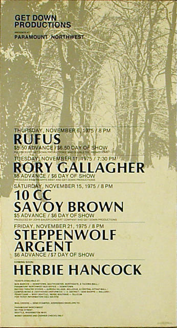1975/10/25 SAT USA NEW YORK BEACON THEATER 1975/10/26 SUN CANADA MONTREAL SPORTS CENTER 1975/10/27 MON CANADA QUEBEC PALAIS DE CONGRESS 1975/10/28 TUE CANADA OTTAWA ARTS CENTER 1975/10/29 WED USA PROVIDENCE RHODE ISLAND COLLEGE 1975/10/30 THU USA NEW BRUNSWICK COOKE COLLEGE/RUTGERS 1975/11/01 SAT USA DETROIT MICHIGAN PALACE 1975/11/03 MON USA INDIANAPOLIS RIVOLI THEATER 1975/11/04 TUE USA St. LOUIS AMBASSADOR THEATER 1975/11/05 WED USA CINCINNATI EMERY AUDITORIUM 1975/11/06 THU USA CLEVELAND ALLEN THEATER 1975/11/07 FRI USA CHICAGO RIVIERA THEATER 1975/11/08 SAT USA St. PAUL CIVIC CENTER 1975/11/09 SUN USA MILWAUKEE UPTOWN THEATER 1975/11/13 THU CANADA VANCOUVER QUEEN ELIZABETH THEATER 1975/11/14 FRI USA PORTLAND PARAMOUNT THEATER 1975/11/15 SAT USA SEATTLE PARAMOUNT THEATER 1975/11/16 SUN USA SPOKANE COLISEUM 1975/11/17 MON USA YAKIMA ? 1975/11/18 TUE USA MEDFORD ARMORY (LOOK RIGHT) 1975/11/19 WED USA REDDING CIVIC AUDITORIUM 1975/11/21 FRI USA SAN FRANCISCO WINTERLAND 1975/11/22 SAT USA FRESNO WARNER THEATER 1975/11/26 WED USA SANTA MONICA CIVIC CENTER (LOOK RIGHT) 1975/11/27 THU USA PHOENIX CELEBRITY THEATER 1975/11/29 SAT USA DALLAS ? 1975/11/30 SUN USA NEW ORLEANS ? 1975/12/03 WED USA ATLANTA ? 1975/12/04 THU USA BALTIMORE ? 1975/12/05 FRI USA PHILADELPHIA TOWER THEATRE 1975/12/06 SAT USA BOSTON ORPHEUM THEATER |