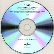 10cc - Greatest Hits & More (UK 2CD-R, promo) 昨年出た2枚組ベスト盤の関連プロモ盤の1つ。正規盤に比べ、「Ready To Go Home」 「Neanderthal Man」「Old Wild Men」「Son Of Man」の4曲少ない全29曲入り。 |