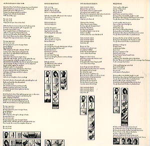 ![]() Insert 歌詞カードは二つ折りで、これは内側の左。右 が訳詞で、裏は英国盤のインナーと同じです。 |